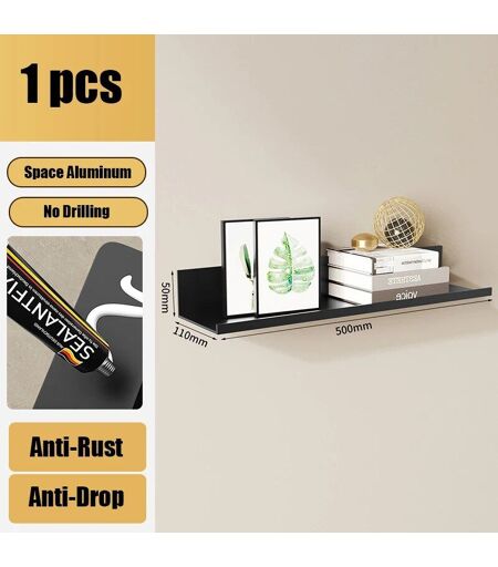 Étude Salon Bricolage Étagère,Étagère Décorative,Métal Aluminium Matériel Décoration Monocouche Étagère,Salle De Bain Toilette Étagère Murale Étagères Flottantes Pour Le Rangement - Type Black-50cm