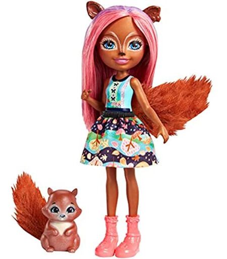 Enchantimals Mini-Poupée Sancha Écureuil Et Figurine Animale Stumper, Aux Cheveux Roses Et Bruns Avec Jupe En Tissu, Jouet Enfant, Fmt61