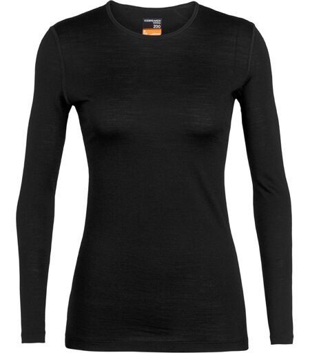 Icebreaker - Sous-vêtement en laine de mérinos - W Merino 200 Oasis LS Crewe Black pour Femme en Laine - Taille M - Noir