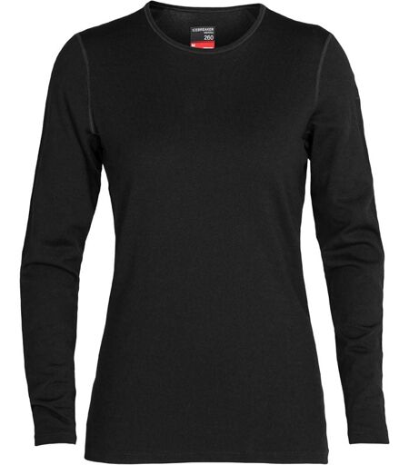 Icebreaker - Sous-vêtement en laine de mérinos - W Merino 260 Tech LS Crewe Black pour Femme en Laine - Taille S - Noir
