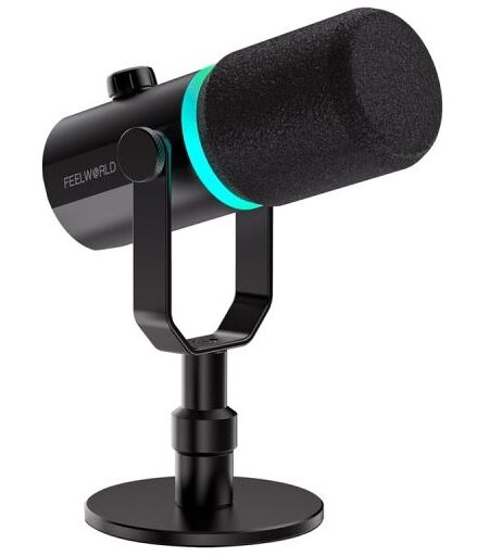 Microphone dynamique XLR/USB FEELWORLD PM1-XS pour enregistrement de podcasts, jeux, streaming en direct avec support (couleur : noir) - PM1 ...