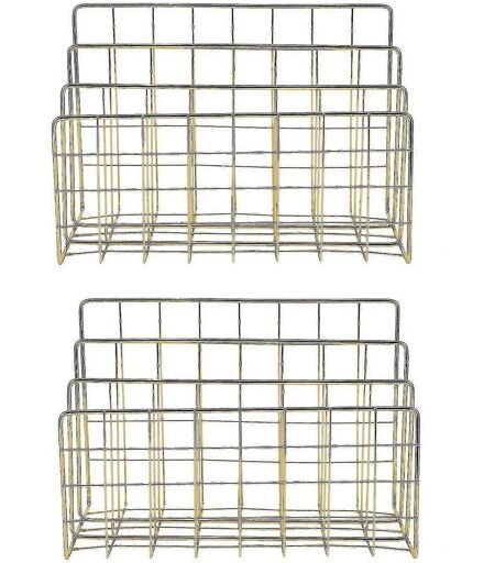 Lot De 2 Étagères De Rangement En Fer De Style Nordique, Support De Livres, Étagère De Bureau À Trois Niveaux Pour Magazines (Doré) Hy