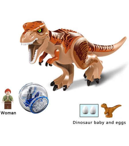 Dinosaure T-Rex Ptérodactyle Blocs De Construction Monde Jurassique Briques De Construction Enfants Jouet Cadeau (T-Rex Marron Avec Balle Et Personnage)