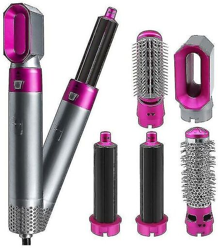CREA Electric Hair Styler Hair Dryers 5 In 1 Hair Curler Automatic Hair Straighteners Blow Dryer Brush Dry & Wet Curling Iron Set(color:rose Red)