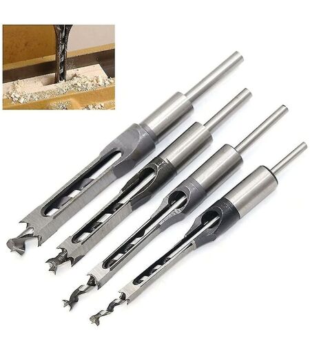CREA Foret à trou carré, 4 pièces de forets carrés à mortaise pour le travail du bois, kits de forets en spirale, presse à mortaise, ensemble de forets à