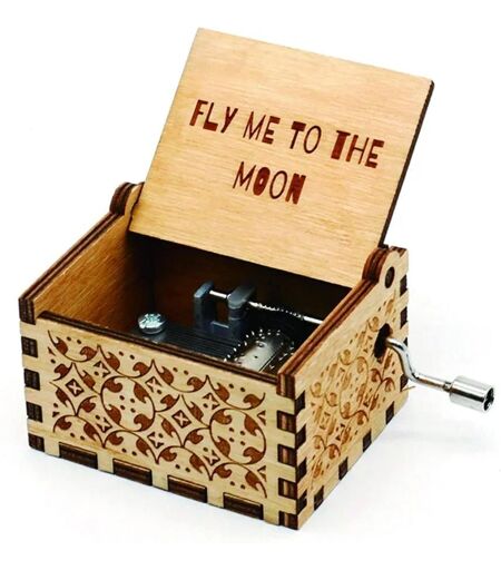 Boîte À Musique Vintage En Bois Avec Manivelle,Queen Noire,Manivelle Antique,Décoration D'intérieur,Cadeaux De Noël - Type Fly Me To Ihe Moon