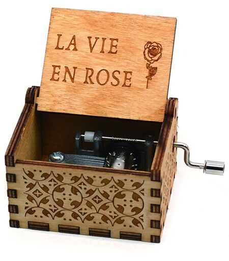 Boîte À Musique À Manivelle En Bois Sculpté,Moon River,La Vie En Rose,Fly Me To The Moon,Day,Birthday Bifts For Girlfriend - Type La Vie En Rose