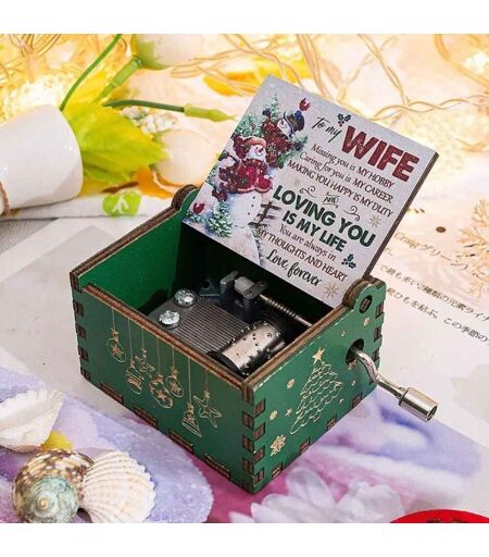 Boîte À Musique À Manivelle En Bois Carboné,Thème De Noël,Vert,Père Noël,Décoration D'intérieur,Cadeau De Nouvel An,Chaud - Type Happy Birthday #M