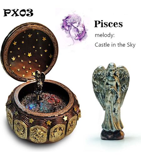 Boîte À Musique Rétro 12 Signes Du Zodiaque En Bronze,Boîtes À Musique 12 Constellations,Soleil,Dieu,Cadeau Pour Filles,Fête De Léon,Cadeaux D'anniversaire - Type Pisces Px03