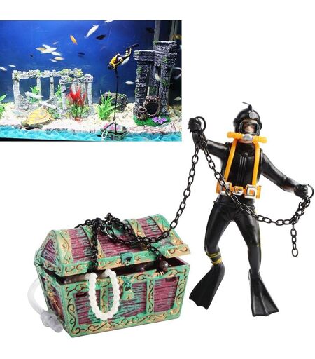 Chasseur De Trésor Noir Ornement Aquarium Figure D'action De Poissons Diver Plongeur Sous-Marine Treasure Chest Décor De Paysage De Réservoir