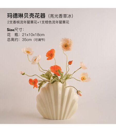 Nordic Light Luxe Vent Coquille Électrolytique Vase En Céramique Décoration Douce Décoration De La Maison Ornements Soigneusement Sélectionnés-Fleur De Coquille-Fleur De Glace A La Vanille Brillante Ensemble D'art