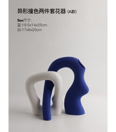 Vase Ornement Créatif En Céramique En Forme De Salon Moderne Arrangement De Fleurs Maison Entrée Modele Chambre Décoration Douce - En Forme De Couleur Contrastante Ensemble De Fleurs Deux Pieces - Type A