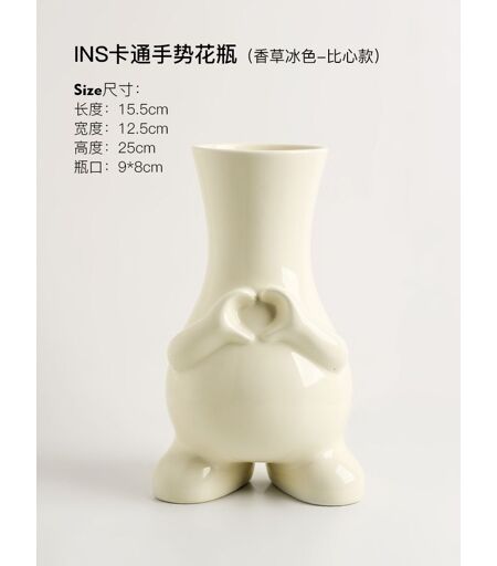 Ins Creme Style Céramique Petit Vase Décoration Salon Table A Manger Meuble Tv Décoration De La Maison Dessin Animé Fleur Vase - Vanille Glace Couleur Vase - Style Coeur