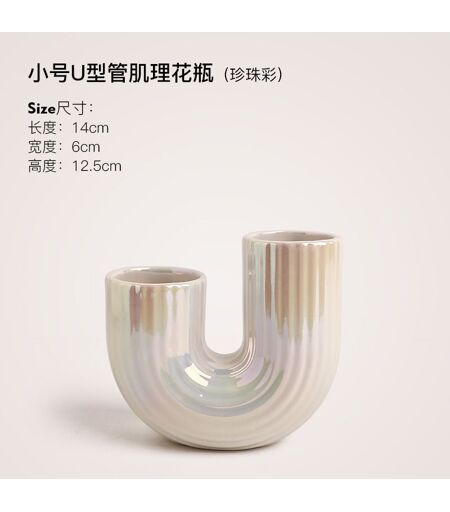Vase En Céramique Dégradé Style Ins Nordique Sens Haut De Gamme Salon Porche Meuble Tv Vase A Fleurs Géométrique Créatif-Vase A Texture Tube En Forme De U Couleur Petite Perle