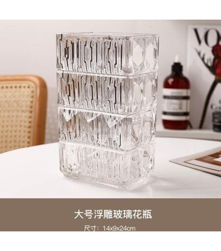 Moderne Simple Vase Ornement Salon Arrangement De Fleurs En Verre Transparent Eau Surélevée Fleurs Sens Avancé Fleur De Bureau - Plat Carré Lusso Vase Grand
