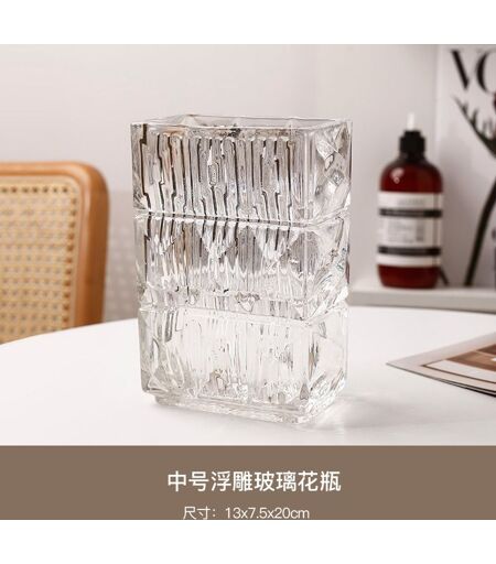 Moderne Simple Vase Décoration Salon Arrangement De Fleurs Verre Transparent Eau Culture Fleurs Sens Avancé Bureau Fleur Navire - Plat Carré Lusso Vase Moyen