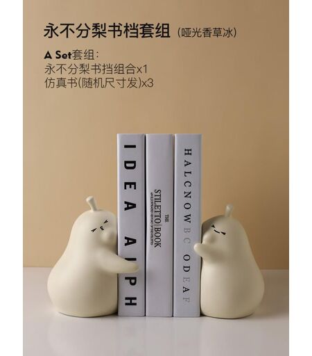 Mignon Grand Serre-Livre En Céramique Poire Câlin Étagere Ornement Maison Salon Bibliotheque Décoration De Chambre D'enfant - Petit Ensemble De Serre-Livres Poire Jamais Divisé - Glace Vanille Mate + Livre De Simulation 3