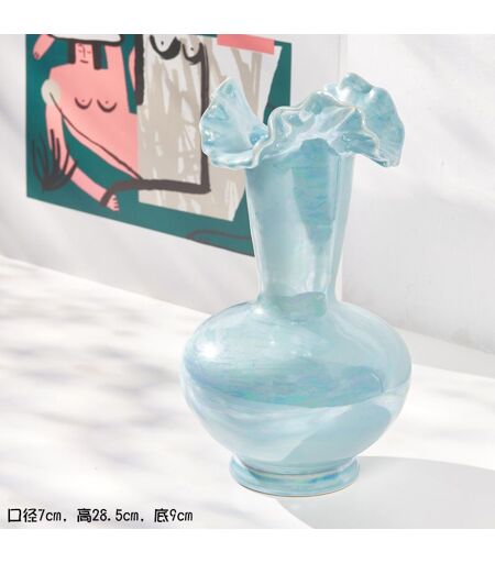 Vase En Céramique Coloré Fantaisie De Luxe Léger Vase A Fleurs Restaurant Invité Moderne Meuble Tv Décoration De Bureau Porcelaine Blanche - Feiyu (Bleu De Reve)