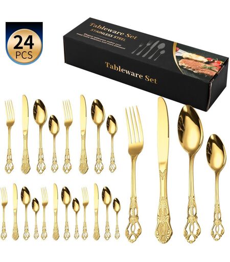 Ensemble De Couverts Royal En Acier Inoxydable,Vaisselle En Relief,Couverts À Steak D'hôtel,24 Pièces