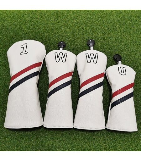 Couvre-Chef En Cuir Pu Pour Club De Golf,Couvre-Chef En Bois,Pilote,Fairway-1 -3 -5 - Type 4pcs Dwwu(White)