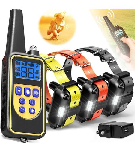 As Show - Jaune Orange Noir - Collier'entraînement Pour Chien, 800m, Télécommande Électrique, Rechargeable, Étanche, Écran Lcd, Pour Toutes Les Tailles, Mode De Vibration, Bip, Fournitures Pour Chiens