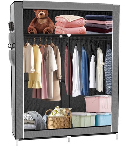 SKECTEN Armoire en Tissu Intissé Organiseur de Rangement Portable avec Barre de Suspension pour Chambre à Coucher, Armoire (Gris)