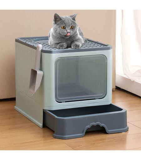 Yongqing - Bac Litière Chat - Maison de Toilette pour Chat Fermée - 50 x 35 x 38cm - Vert d'eau foncé