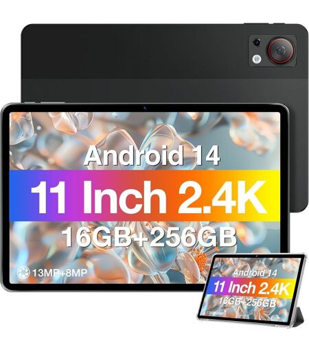 CLOUDDS_T30S Tablette Android 14,2.4K Tablette 11 Pouces,16Go Ram+256Go Rom/Tf 1Tb Tablette Tactile,Tablette Pas Cher 5G Wifi13Mp+8Mp8580MahWidevine L1 Tablette Gaming,Noir