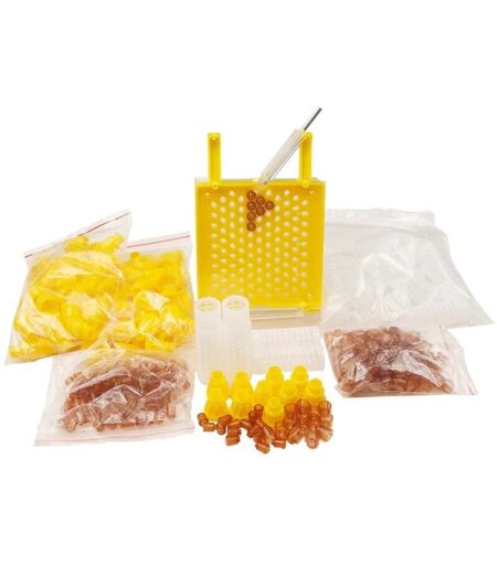 Étape 2 : Ensuite, confinez la reine à l'avant de la cage et pondez ses œufs dans les 110 cellules disponibles. Cela peut également constituer un bon début pour la journée suivante. Le quatrième jour, les larves nouvellement éclos sont prêtes à être transférées. Étape 4 : Insérez ensuite cet appareil dans le support de téléphone connecté au poteau téléphonique. Étapes d'utilisation : Première étape : insérez le plateau à peigne pour débutant dans le cadre et placez la pièce à main marron 110 à l'arrière. (Avec le kit, vous pouvez créer votre propre reine sans greffer ni toucher de larves.) Étape 3 : retirez chaque porte-gobelet de valise et insérez-le dans votre téléphone. Étape 5 : Pour terminer les cellules, placez maintenant les bandelettes de cellules dans les cellules formant la colonie. ...