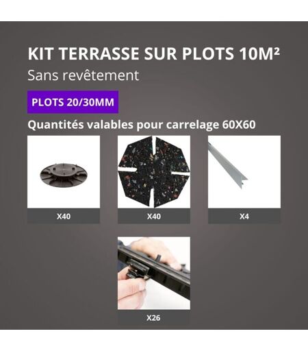 Jouplast - Kit Terrasse sur Plots Sans Revêtement 10M² - Finition Gris Aluminium - 20/30 mm