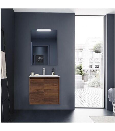 Caesaroo - Meuble de salle de bain suspendu 60 cm en bois de noyer maya avec deux portes et lavabo - Nova - 60 cm Avec miroir et lampe led