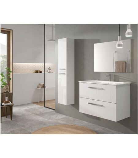 Abitare - Meuble de salle de bain suspendu 80 cm blanc brillant avec miroir - Siracusa - Blanc brillant Avec double colonne et lampe led