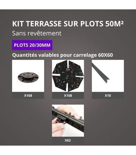 Jouplast - Kit Terrasse sur Plots Sans Revêtement 50M² - Finition Gris Anthracite - 20/30 mm
