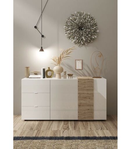 Azura Home Design - Buffet 2 portes et 3 tiroirs venus blanc laqué brillant/Kadiz 181 cm