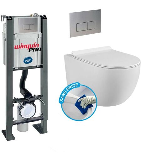 Wirquin Pro - Pack Complet wc Sans Bride Bati Autoportant + Cuvette blanche
