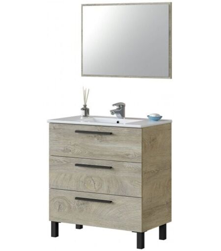 Meuble de salle de bain au sol 80 cm 3 tiroirs chêne avec miroir et lavabo encastré – Argentera Les détails qui comptent Abitare vous suggère des produits spéciaux et de qualité pour l’ameublement de notre maison. La structure du meuble de salle de bains est idéale pour toutes les solutions que vous recherchez : en effet, il convient surtout aux pièces de dimensions modestes sans pour autant renoncer à une touche de style et d’élégance. Pratique et de petite taille, profitez maintenant de cette offre. Argentera Le meuble de salle de bain au sol Argentera, est une solution pratique et élégante pour les pièces de votre salle de bain. Il se reconnaît par son style incomparable avec son stratifié effet bois. Il se compose de 3 tiroirs pratiques avec guides cachés et fermeture soft-close. Les poignées sont en aluminium laqué noir mat et les pieds en aluminium laqué noir mat. Le lavabo en céramique lui confère une résistance aux hautes températures, aux abrasions et aux rayures, le rendant ...