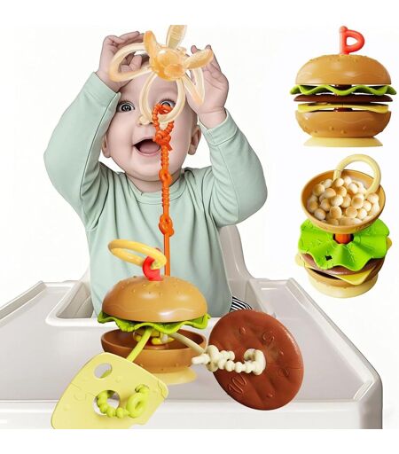 Bébé Burger Jouet Ventouse Chaise Haute, Jouets Eveil Bébé pour Dentition,Jeux Bebe 6 Mois Jouet Montessori Sensoriel, Transformable en Bol à Snacks pour Filles et Garçons