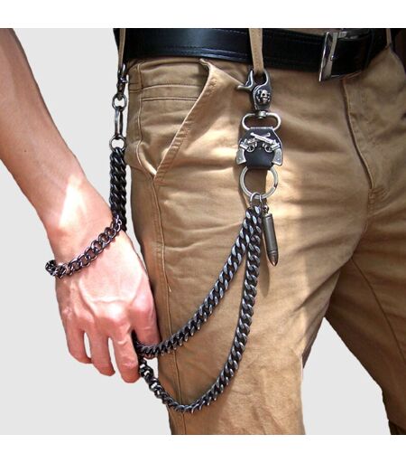 LNTYQ Mode Chaîne de Pantalon Homme Hip-hop Punk Porte-clés en métal Chaînes à 2 rangées Jeans Rock Chaîne de portefeuille Biker Ceinture taille Solide