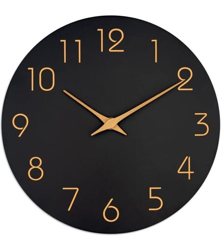 SUNXURY Horloge murale noire de 35,6 cm, silencieuse, sans tic-tac, silencieuse, avec chiffres en or rose, décoration minimaliste pour chambre à coucher,