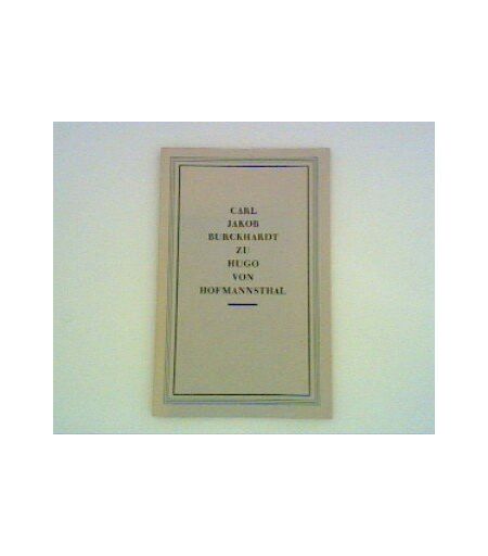 Burckhardt, Carl Jacob Zu Hugo Von Hofmannsthal