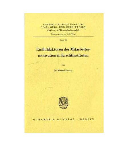 Stocker, Klaus G. Einflußfaktoren Der Mitarbeitermotivation In Kreditinstituten.