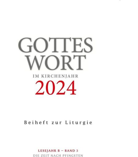 Gottes Wort Im Kirchenjahr: 2024. Lesejahr B - Band 3: Die Zeit Nach Pfingsten. Beiheft Zur Liturgie