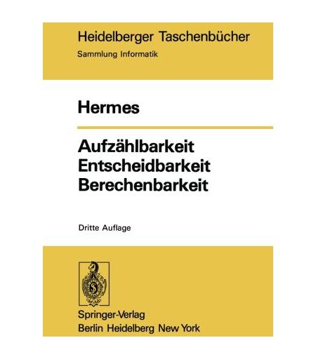 Hans Hermes Heidelberger Taschenbücher, Sammlung Informatik, Band 87: Aufzählbarkeit, Entscheidbarkeit, Berechenbarkeit. Einführung In Die Theorie Der Rekursiven Funktionen