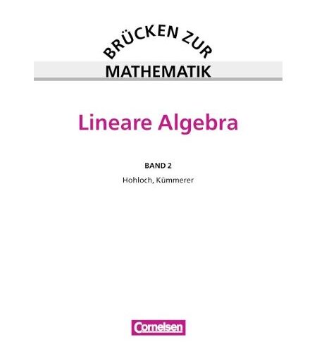 Hohloch, Prof. Dr. Eberhard Brücken Zur Mathematik, Bd.2, Lineare Algebra: Lineare Algebra. Hilfen Beim Übergang Von Der Schule Zur Hochschule Und Im Grundstudium Technischer, ... Wirtschaftswissenschaftlicher Fachrichtungen