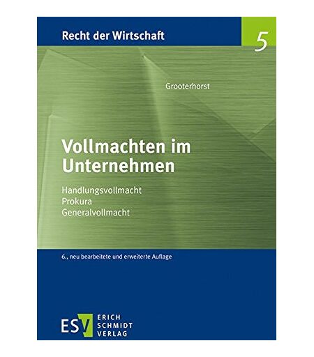 Grooterhorst, Dr. Ursula Vollmachten Im Unternehmen: Handlungsvollmacht - Prokura - Generalvollmacht (Recht Der Wirtschaft, Band 5)