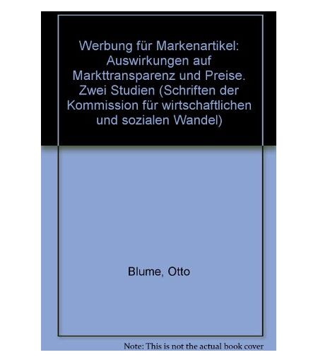 Werbung Für Markenartikel. Auswirkungen Auf Markttransparenz Und Preise - Zwei Studien