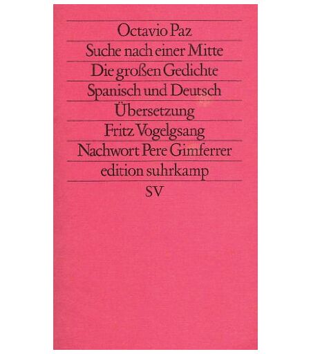 Binding : Taschenbuch, Label : Suhrkamp, Publisher : Suhrkamp, medium : Taschenbuch, numberOfPages : 215, publicationDate : 1980-05-17, authors : Octavio Paz, translators : Fritz Vogelgsang, languages : german, spanish, ISBN : 351811008X ...