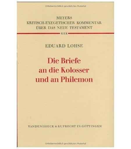 Eduard Lohse Die Briefe An Die Kolosser Und An Philemon: 9.2 (Kritisch-Exegetischer Kommentar Uber Das Neue Testament)