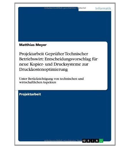 Matthias Meyer Projektarbeit Geprüfter Technischer Betriebswirt: Entscheidungsvorschlag Für Neue Kopier- Und Drucksysteme Zur Druckkostenoptimierung: Unter ... Von Technischen Und Wirtschaftlichen Aspekten