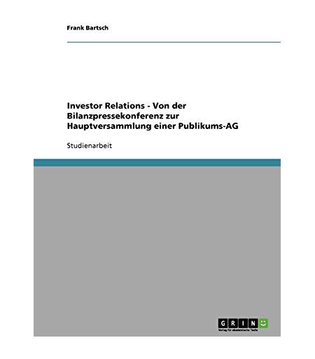 Frank Bartsch Investor Relations - Von Der Bilanzpressekonferenz Zur Hauptversammlung Einer Publikums-Ag